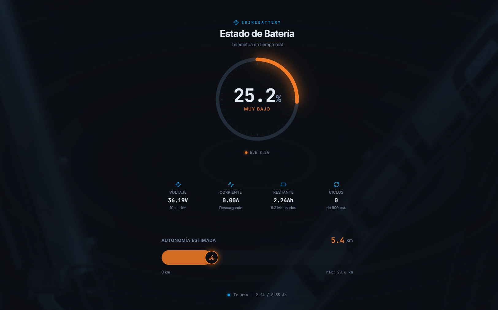 Sistema fullstack de telemetría en tiempo real para e-bike con dashboard web interactivo, API REST con Express.js, frontend React, WebSockets para streaming de datos de sensores IoT. Incluye visualización de métricas, históricos y monitoreo de batería en vivo.